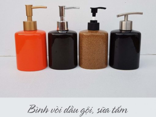 Thay vì sử dụng những chai lo, nguyên bản của sản phẩm dầu gội, sữa tắm, chúng ta sẽ sử dụng những mẫu bình được thiết kế với màu sắc kiểu dáng phong phú…Điều này sẽ giúp cho không gian phòng tắm thêm điểm nhấn từ đó góp phần tạo sự sang trọng và chuyên nghiệp.